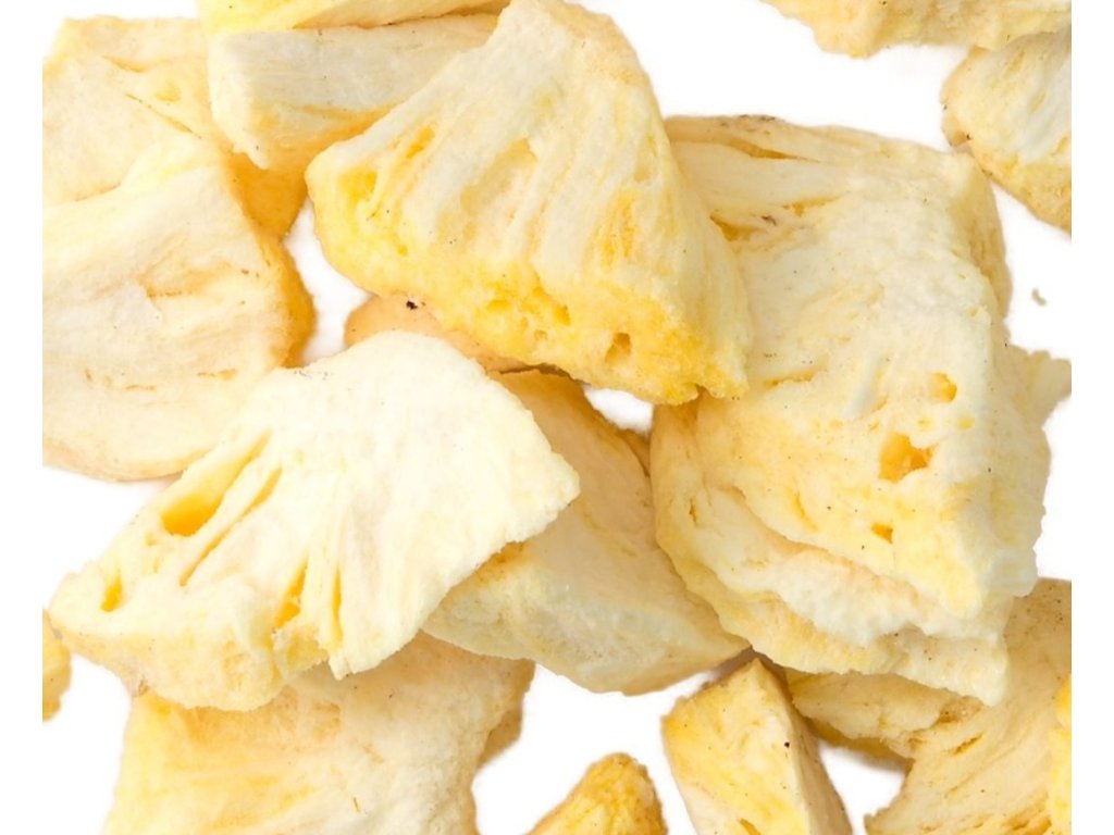 Lyofilizovaný ananas – křupavé ovoce plné intenzivní chuti a vitamínů. Sušené mrazem pro zachování barvy, vůně i živin. Skvělé do jogurtu, kaší nebo jako zdravá svačina.